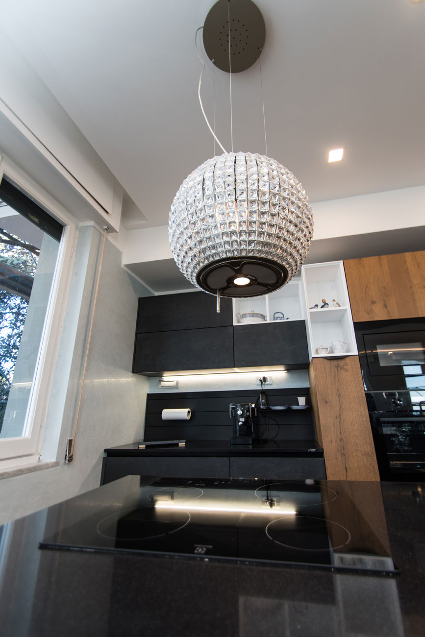 Cappa ad isola by Elica: “STAR” non è solo una cappa, è anche un elegante punto luce: una lampada originale, altamente decorativa, composta da centinaia di piccoli prismi in vetro che la rendono un oggetto in grado di dare un’impronta di grande personalità a qualsiasi ambiente cucina.