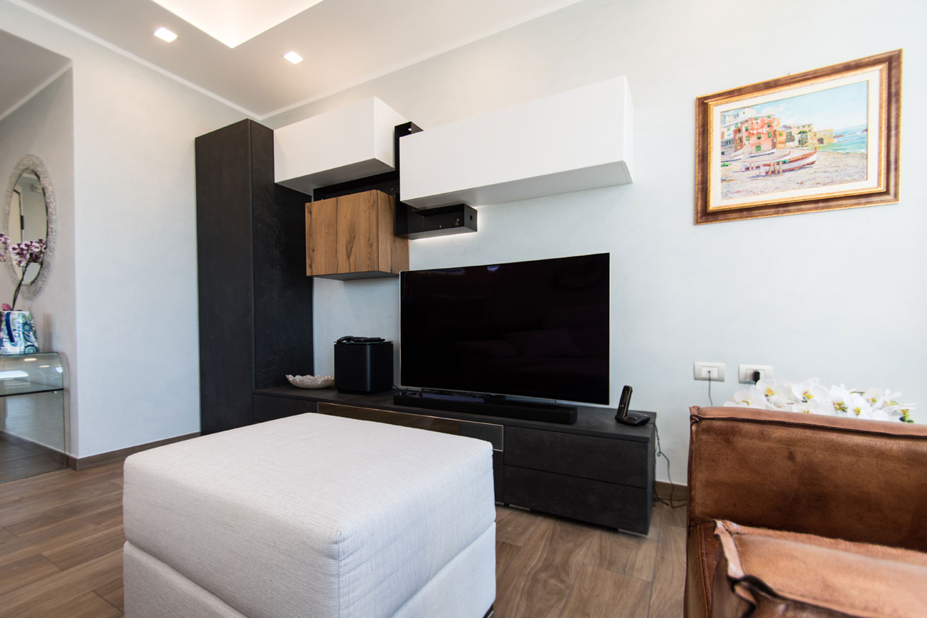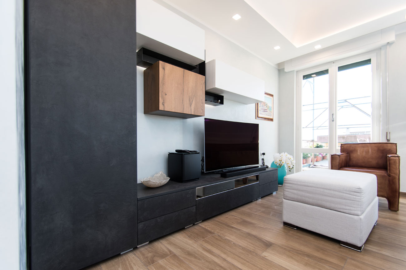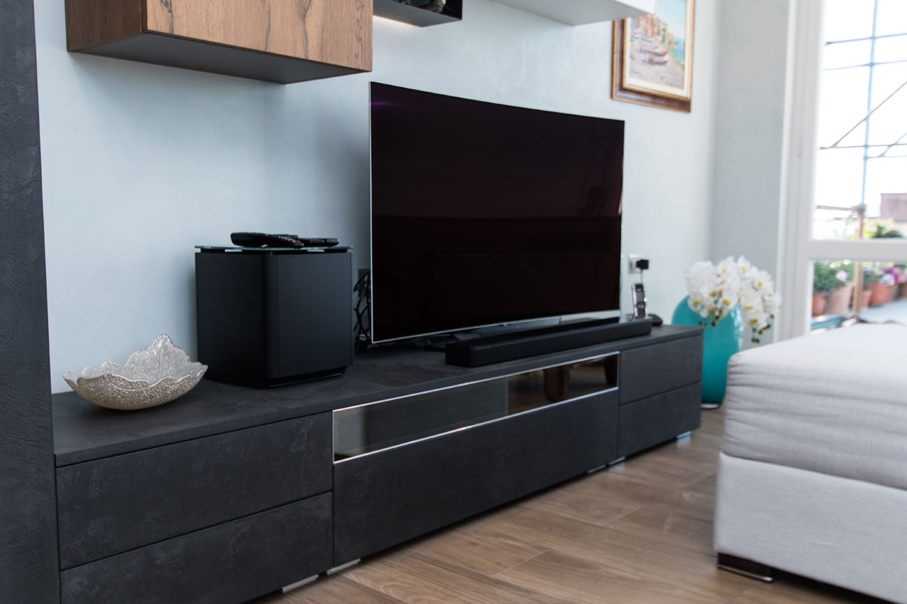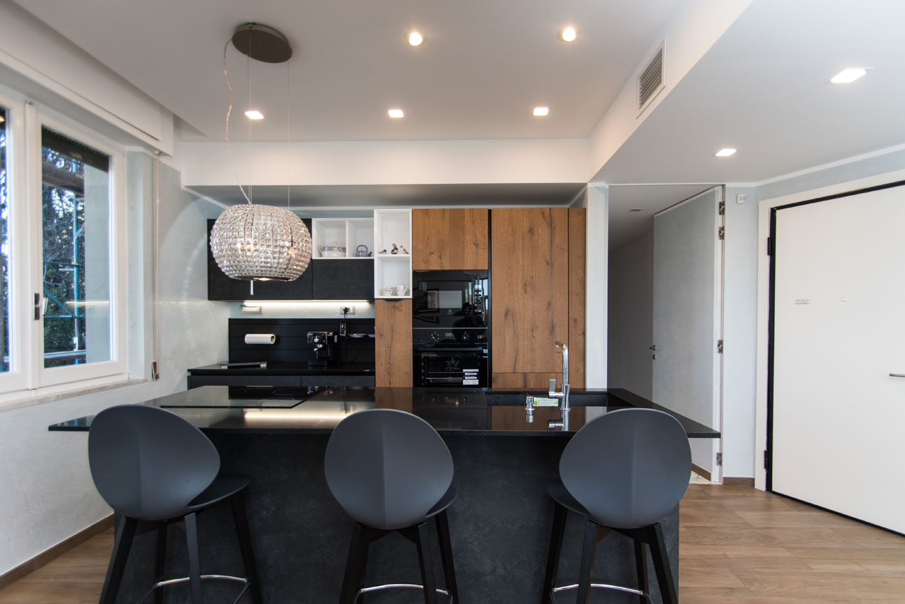 Il modello “OLTRE” si distingue per le peculiarità delle proprie finiture, dalla forte tattilità degli impiallacciati e delle finiture cemento. Una cucina (ed in questo caso anche il soggiorno) nata con l’obiettivo di unire l’estrema pulizia delle forme alla ricchezza e tecnologia dei materiali, alla continua ricerca di nuove espressioni visive dove l’anta diventa la protagonista.