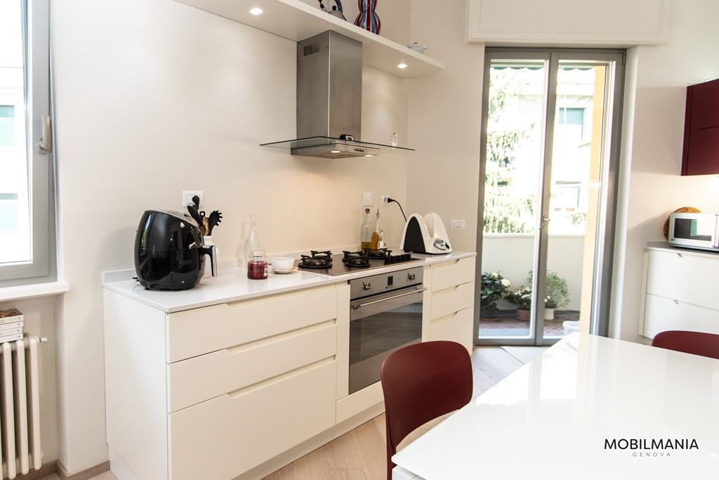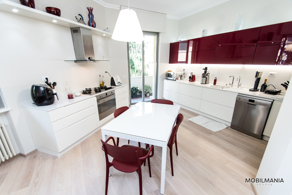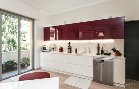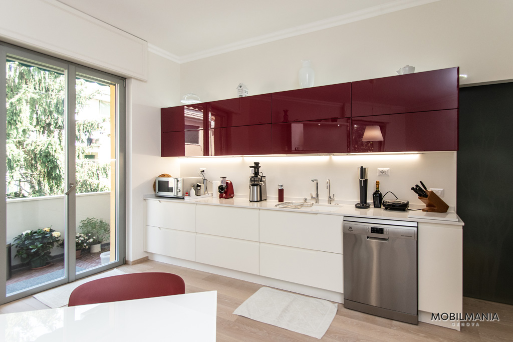 Rosso rubino lucido e bianco assoluto opaco, un connubio di colori eleganti e senza tempo. Il modello scelto dalla nostra cliente è la Lube Cucine “Luna” in versione laccata opaca e lucida con top in quarzo bianco assoluto.