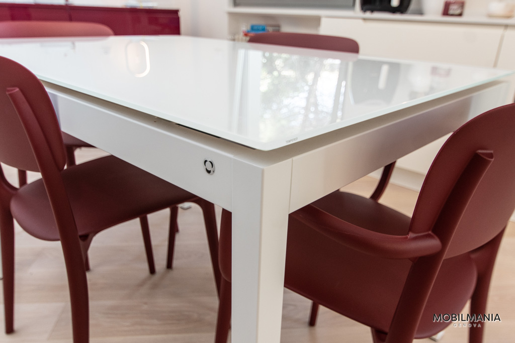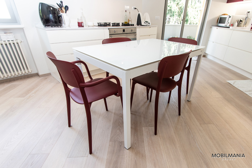 Tavolo e sedie Calligaris con le LIBERTY in versione rosso bordeaux coordinate perfettamente con i pensili!