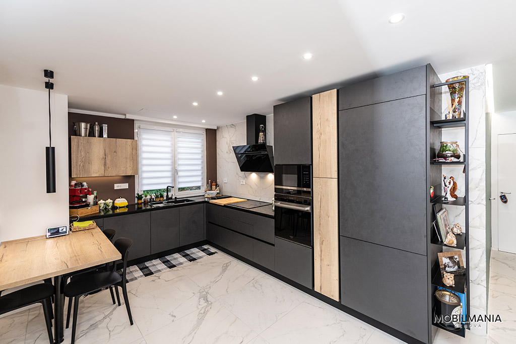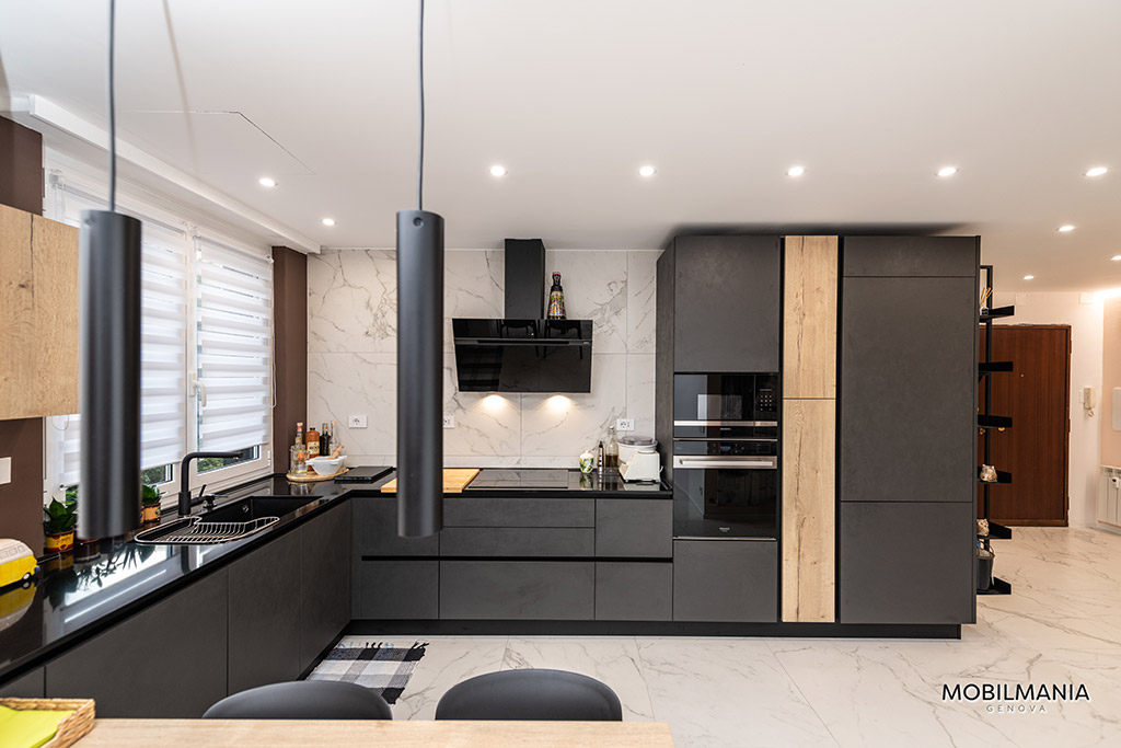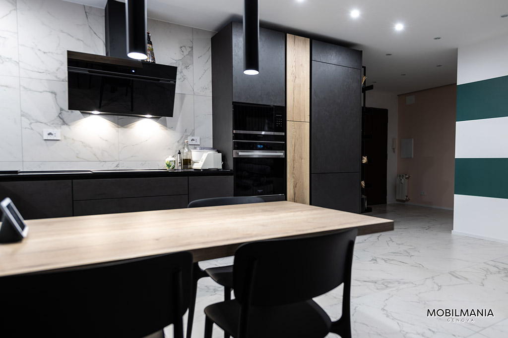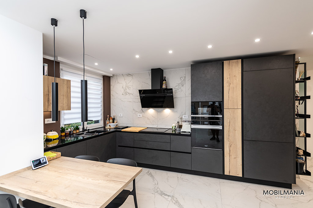 L’abbinamento tra lo scuro del Lavagna effetto cemento e del Rovere vintage ha quel non so che di industriale senza però essere troppo pesante.