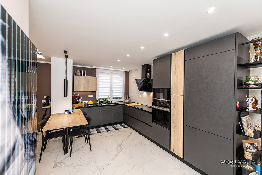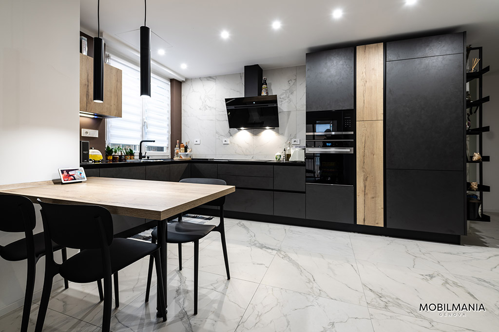 In questo nostro progetto, iniziato in pieno lockdown, ci siamo occupati di realizzare questa cucina in un open space ampio e spazioso.
